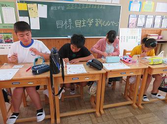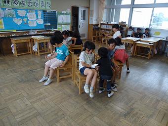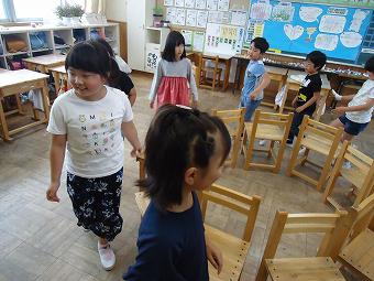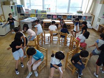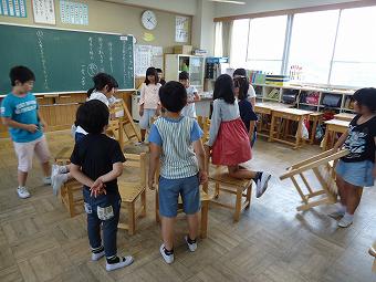 3年生が業間の時間に係が自主的に運営して、共遊を行いました。係の指示に従って、椅子取りゲームを行いました。感心したのは、座れず、見る方に回った子達が、きちんを椅子を並べて行儀良く応援している姿でした。どの子も笑顔で、みんなで楽しい時間を過ごしました。