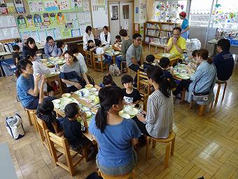 1年生の学年委員が主催して、親子のふれあいをテーマに「1学年PTA」を行いました。ドッジボールやしっぽ取りゲームでふれあった後、栄養士さんから食育のお話を聞き、給食を親子で食べました。子供も保護者も笑顔いっぱいのひとときでした。学年委員の皆さん、大変ありがとうございました。