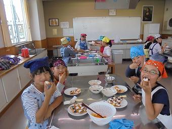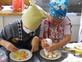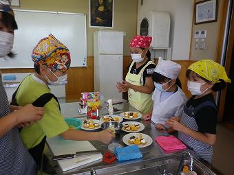 手作り科学クラブで、カナッペ作りを行いました。クラッカーの上に思い思いの材料を乗せて、みんなでおいしく食べました。どの子も楽しそうに活動していました。