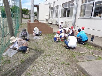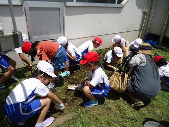 県民の日の行事にちなんで、なかよし班ごとに、友遊館、スマイルランド(学童)みなみ保育園に行き、除草活動を行いました。除草を通して、郷土を愛する心を育てると共に、異学年で組んでいるなかよし班のみんなと協力することがねらいです。どの班も終わりの時間まで一生懸命、除草を行いました。友遊館の館長さん、みなみ保育園の園長さんにもお褒めの言葉をいただき、みんなとても嬉しそうでした。
