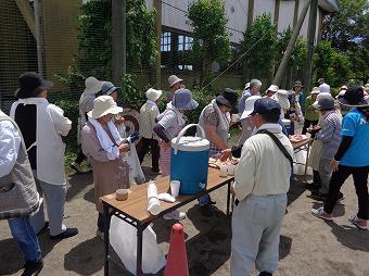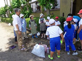 地域の方とのふれあいをめあてになかよし除草を行いました。地域の方も50人以上参加してくださり、各なかよし班に分かれて、一緒に除草を行いました。短い時間でしたが、地域の方と、楽しく仕事をしながら、触れあうことができました。また、草刈り隊の皆さんも駆けつけてくださり、学校敷地内がとてもきれいになりました。参加いただいた地域の皆様、大変ありがとうございました。