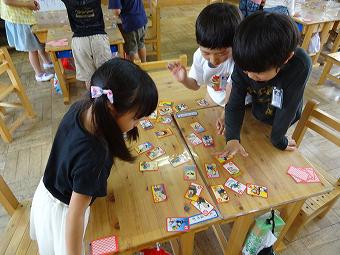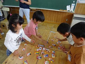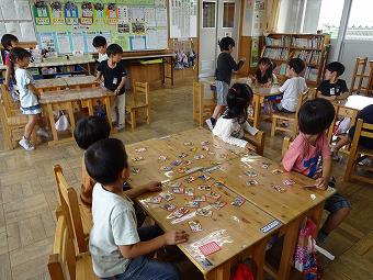 1年生がかるた取りを行いました。どの子も一生懸命、楽しそうに取り組んでいました。