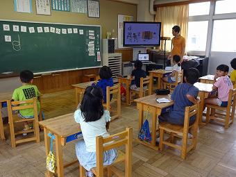 2年生が外国語活動を行いました。ALTの先生とアルファベットの発音を行ったり、あいさつの仕方を学んだりしました。どの子も楽しく集中して学習に取り組んでいました。
