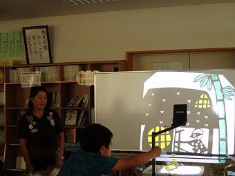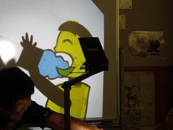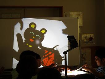 楡木KLVの皆さんを講師にお迎えし、影絵教室を開きました。希望した子供たち、保護者、そして職員が参加し、自分の影絵を作りました。どの子も、夢中で影絵作りを行い、できあがったものをOHPに写して楽しんでいました。こうした体験を通しながら本の楽しさにさらに触れていければ、と思います。