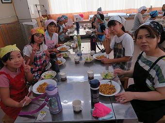 サマースクール2日目は、鹿沼市食改推進委員の方々を講師にお迎えして、料理教室を開きました。鯖のドライカレー、ブロッコリーとじゃがいものパン粉焼き、フルーツラッシーを、子供たちは保護者、職員とともに作りました。どの班も夢中になって料理に取組、会食の時間には、食改委員の方の腹話術を楽しむなど、充実した時間を過ごすことができました。