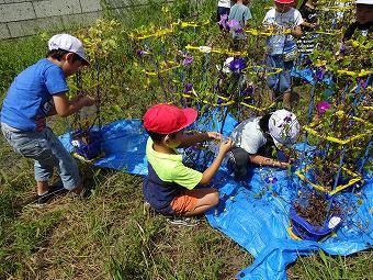 1年生が生活科でアサガオの種取りをしました。来年の1年生にプレゼントするためです。100個も取れた、と嬉しそうに話す子もいて、どの子も自分たちが育てたアサガオを次の学年に渡す喜びを感じていました。