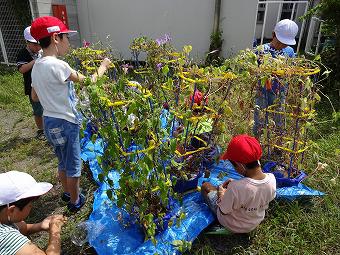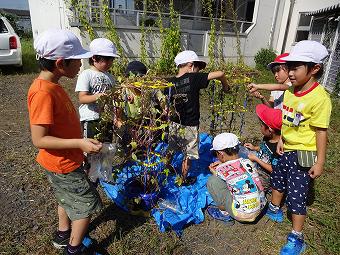 1年生がアサガオの種取り三回目を行いました。これまでと合わせて、合計300個以上取った子もいて、みんな、種の豊作に満足そうでした。