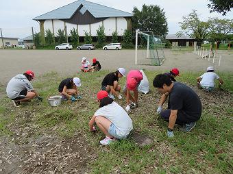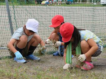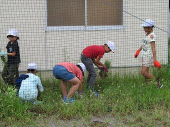 火曜日に引き続いて、全校除草を行いました。仲良し班で、協力しながら除草を行いました。どの子も意欲的に進んで行っていました。