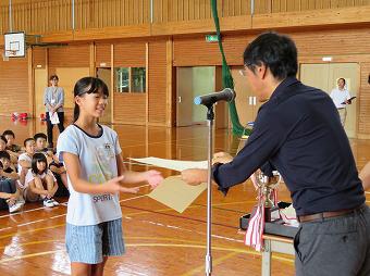 生活委員会集会後、表彰集会を行いました。夏休みに行われた各種スポーツ大会の表彰、口と歯の健康標語ポスター等に関する表彰、国体栃木大会に向けてのジュニア強化選手認定などを行いました。楡小っ子はさまざまな分野で活躍しています。