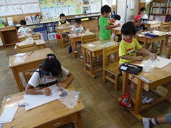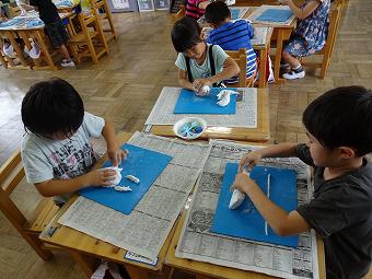 1年生が図工の時間に「のばしてぺったん」の学習をしました。紙粘土を使って創造の翼を広げる学習です。どの子も一生懸命に取り組んでいました。