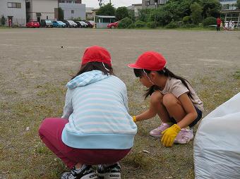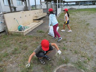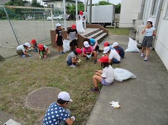 清掃の時間に全校除草を行いました。なかよし班で、除草に取り組みました。どの子も意欲的に協力して除草を行っていました。