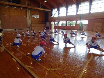 業間の時間、全校体力作りを行いました。下学年は校庭で「ふやし鬼」を、上学年は体育館で「手つなぎ鬼」を行いました。遊びながら走力をつける取組です。どの子も学年関係なく、全力で走り回っていました。