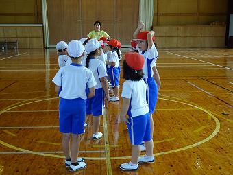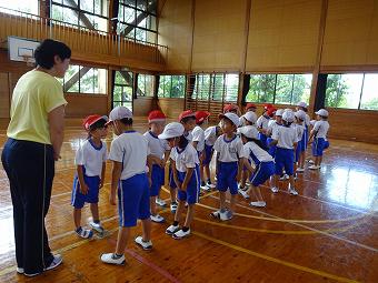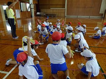 1・2年生が合同体育を行いました。尻尾取りや氷鬼など、楽しく活動しました。