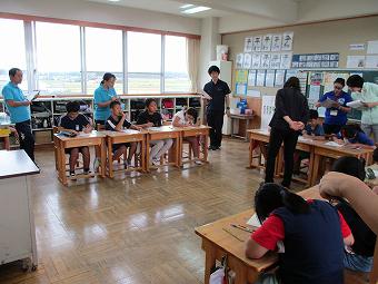 6年生が外国語の学習を行いました。夏休みの出来事について英語で話す学習です。ALTに助言を得ながら、一生懸命取り組んでいました。