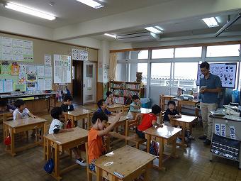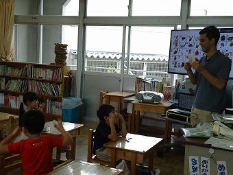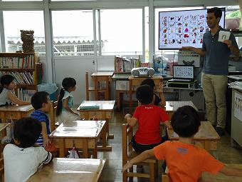 1年生が外国語の学習を行いました。動作を交えてアルファベットを覚えました。皆、意欲的に学習していました。