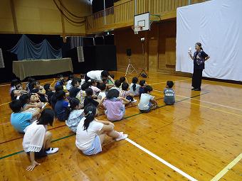 本校では、特色ある教育活動として、「千葉省三に学ぶ」学習を教科横断的に行っています。郷土の誇る児童文学作家千葉省三の生涯や、その作品を学ぶことで、郷土愛を育むと共に本校の育てたい資質・能力「長所や短所を含め、他にない自分を大切にしようとする能力」に迫ることをねらいとしています。この学習には地域の方の協力は欠かせません。本行事も、楡木KLVの皆様の御協力を得ながら、多くの地域の方、保護者の方に参観いただきました。最初に図書委員がこの日のために用意した「虎ちゃん日記」の影絵と「千葉省三のお話に関するクイズ」を発表しました。続いてKLVの方が新作影絵「目の見えないおじいさんと子犬」を上演してくださいました。感動的な演目で、涙を流している子もいました。公演後、子供たちは「影絵がとてもきれいだった」、「おじいさんと子犬のやさしさが心に残った」などの感想を発表しました。その後、全校で「大切なもの」の合唱をしました。KLV代表の方から「やさしさ、という宝物を感じてくれれば嬉しいです」との話がありました。KLVの皆様、ご来場いただいた地域の皆様、大変ありがとうございました。