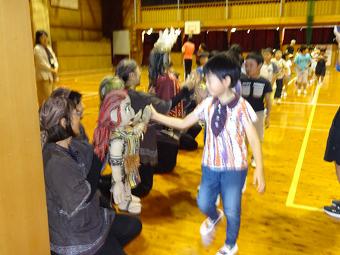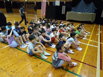 昼休み。今日は雨なので、子供たちは体育館で遊んでいます。低学年の子たちが先生たちと思い思いの遊びに興じています。ボールあて、バスケット、フラフープ。どの子も笑顔が弾けています。