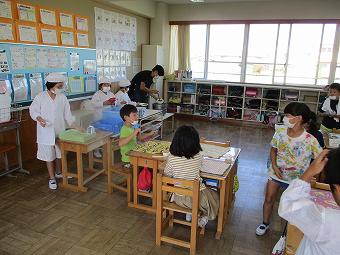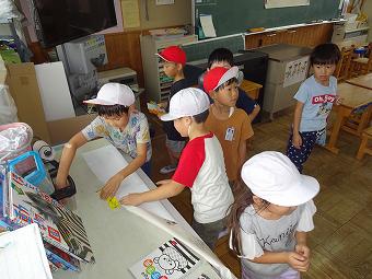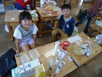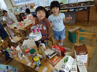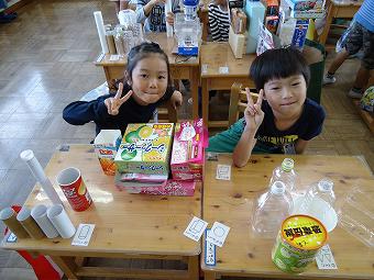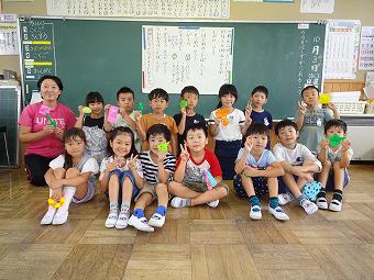 1年生が図工の時間に「びっくりぴょーん」の学習をしました。ペットボトルに穴を開けて、細工をし、息を吹き込むとその細工部分が動くおもちゃづくりです。どの子も想像の翼を思い切り広げて、楽しそうに学習していました。