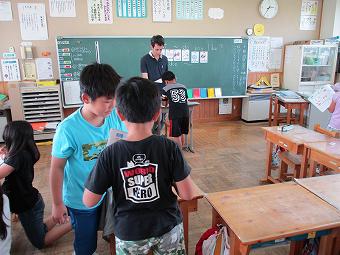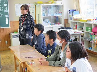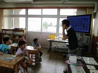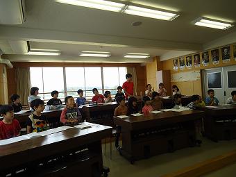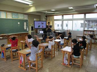 一年生が外国語活動を行いました。一年生はALTのとおりに発音するので、とても発音が良いです。小さい頃から英語に親しむメリットを感じます。今日も、アルファベットを学習し、お互い、英語で会話したりする学習を行いました。