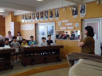 5・6年生が「千葉省三に学ぶ」の学習をしました。KLVの方が影絵を見せてくださったり、当時の子供たちの生活の様子を話してくださったりしました。5年生は着物を着させていただき、とても喜んでいました。語り部としてKLVの皆さんが、千葉省三の世界を楡小の子供たちにしっかりと伝えてくださっています。KLVの皆さん、大変ありがとうございます。