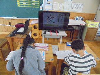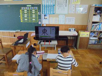 きらら月組で、国語、漢字の学習を行いました。デジタル教科書を使い、テレビディスプレイに大写しされた漢字の筆順などを、意欲的に学習していました。