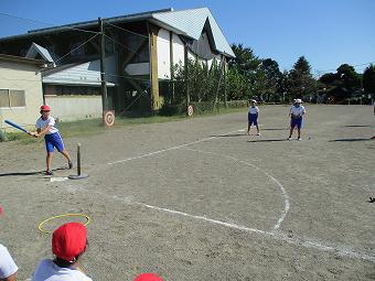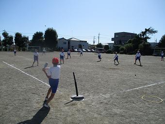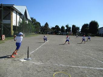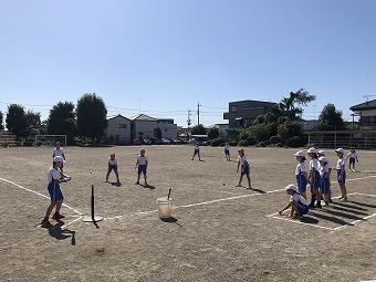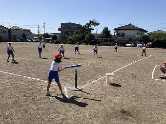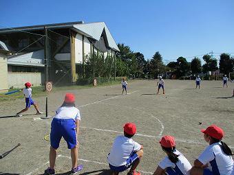 5・6年体育も「ティーボール」でした。子供たちは熱中しながらも、みんなで協力して楽しく活動していました。