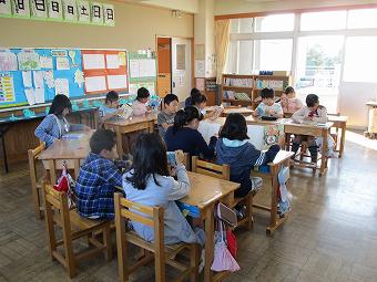 2年生が算数の時間にかけ算九九の学習をしました。4の段を言い合うことで、しっかりと覚える学習です。どの子も真剣にしっかりと学習していました。