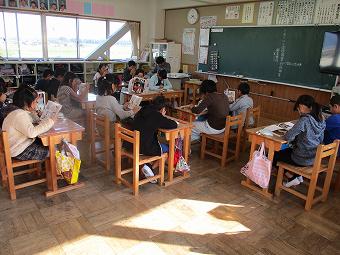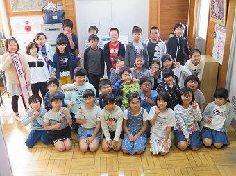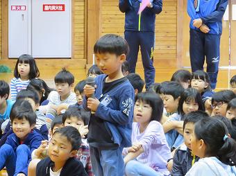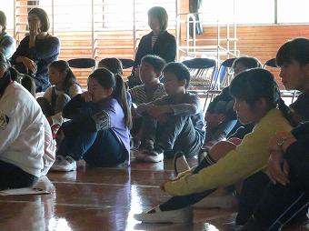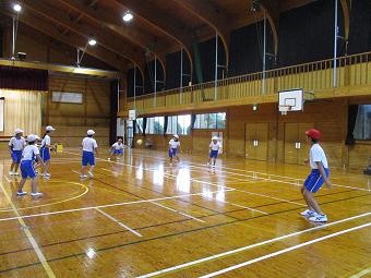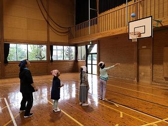 昼休み。今日は雨なので、子供たちは体育館で遊んでいます。低学年の子たちが先生たちと思い思いの遊びに興じています。ボールあて、バスケット、フラフープ。どの子も笑顔が弾けています。
