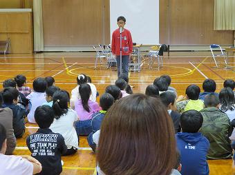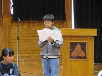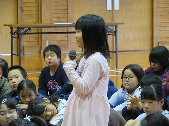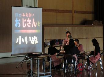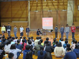 本校では、特色ある教育活動として、「千葉省三に学ぶ」学習を教科横断的に行っています。郷土の誇る児童文学作家千葉省三の生涯や、その作品を学ぶことで、郷土愛を育むと共に本校の育てたい資質・能力「長所や短所を含め、他にない自分を大切にしようとする能力」に迫ることをねらいとしています。この学習には地域の方の協力は欠かせません。本行事も、楡木KLVの皆様の御協力を得ながら、多くの地域の方、保護者の方に参観いただきました。最初に図書委員がこの日のために用意した「虎ちゃん日記」の影絵と「千葉省三のお話に関するクイズ」を発表しました。続いてKLVの方が新作影絵「目の見えないおじいさんと子犬」を上演してくださいました。感動的な演目で、涙を流している子もいました。公演後、子供たちは「影絵がとてもきれいだった」、「おじいさんと子犬のやさしさが心に残った」などの感想を発表しました。その後、全校で「大切なもの」の合唱をしました。KLV代表の方から「やさしさ、という宝物を感じてくれれば嬉しいです」との話がありました。KLVの皆様、ご来場いただいた地域の皆様、大変ありがとうございました。
