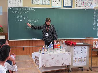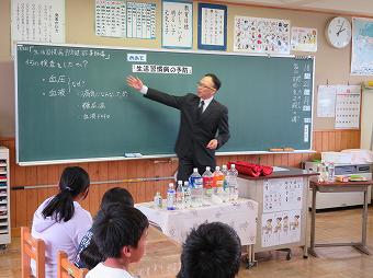 5年生が、南押原小の栄養士さんを講師にお迎えし、「小児生活習慣病予防検診事後指導」学習を行いました。小児生活習慣病の原因となる危険因子はどのようなものがあるか、自分の健康を維持するためには、どのような生活習慣がよいのか、などのお話を聞いたり、自身の食生活記録票などから自分の食生活を振り返ったりました。どの子もバランスのよい食生活と望ましい生活習慣についてしっかりと見つめ直すことのできた授業でした。