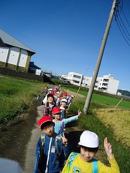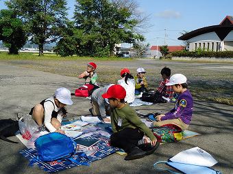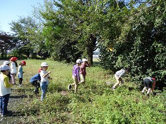 1年生が生活科で、秋をみつけに南押原コミュニティフィールドに行ってきました。コミュニティフィールドに着くまでには、「千葉省三」の作品の舞台の場所もあります。今回の豪雨で、これまで慣れ親しんできたコミュニティフィールドの運動場が大きな被害を受け、その様子を見た子供たちは、自然の恐ろしさを感じていたようでした。幸いにも駐車場は無事でしたので、そこで、子供たちは、それぞれの自分の秋を見つけ、メモをとっていました。どの子も楽しそうに活動していました。
