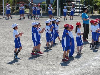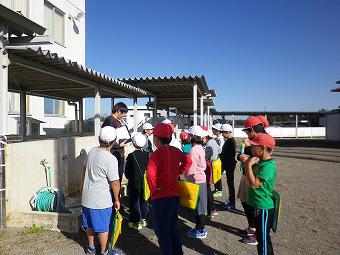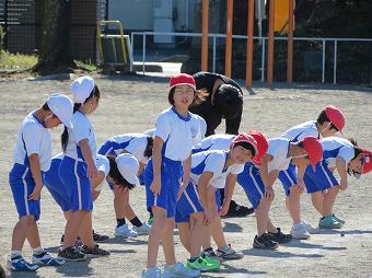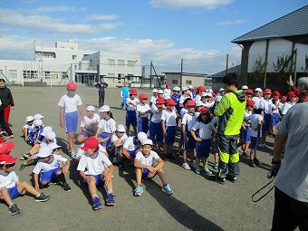 持久走練習後、予告なしの避難訓練を行いました。子供たちは緊急地震速報が流れると一斉に固まって避難のポーズ(ダンゴムシポーズ)を取りました。その後、放送の指示に従って、第一避難場所に集まりました。どの子も、予告なしにもかかわらず、真剣に「自分を守る行動」を取ることができました。