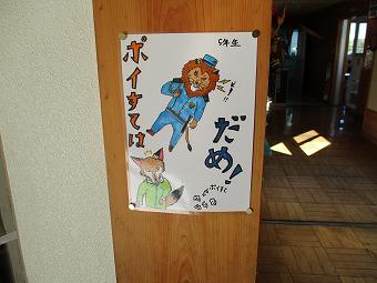 5年生が国語で「提案書を作ろう」の学習をしました。ひとつの班が「ゴミのポイ捨てをなくすために」自分達は何ができるかを考えた結果、ポスターを作って広く呼びかけようと自作のポスターを校内に貼りました。どの子も、自ら考え、意欲的に学習しました。