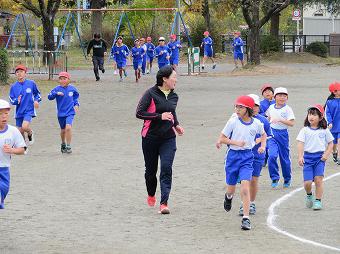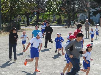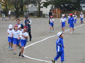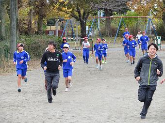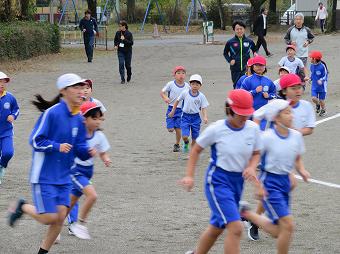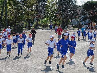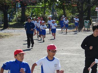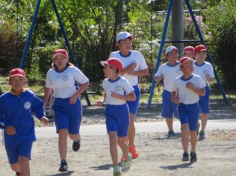 11月28日の持久走大会に向けて、毎日、業間に時間に全校持久走練習を行っています。今日も快晴のもと、職員も含め、みんなで5分間走を行いました。どの子も、自分のめあてに向かって、一生懸命走っていました。