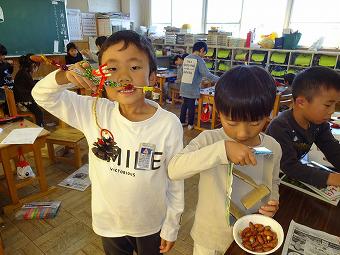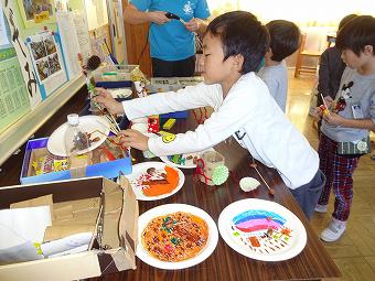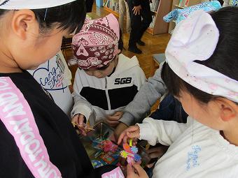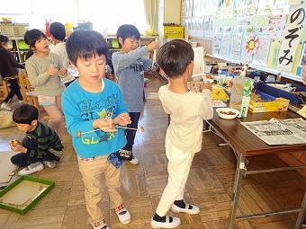 1年生が生活科で「秋のおもちゃ」で遊びました。友達の作ったおもちゃで遊んだり、自分のおもちゃに改良を加えたり、どの子も夢中になって、活動に取り組んでいました。