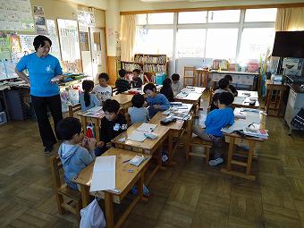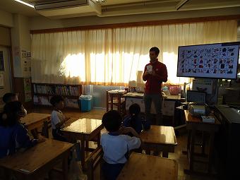 1年生が英語の学習をしました。アルファベットのDの発音の仕方を行いました。どの子も意欲的に活動していました。