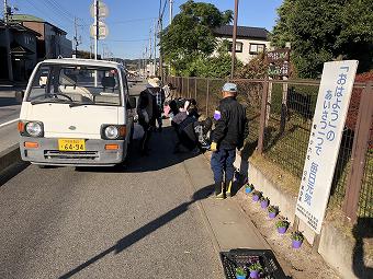 すこやかクラブ(日ノ出町敬老会)の皆さんが、学校正門前の花の植え替えをしてくださいました。いつも四季折々の花を植えてくださり、登下校の子供たちの豊かな心を育んでくれています。すこやかクラブの皆さん、大変ありがとうございます。