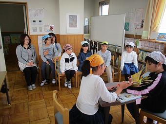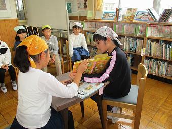 今週は図書委員が昼休みに読み聞かせをしています。読み聞かせに参加してくれた子にお手製のしおりもプレゼントしています。高学年の児童は、自分が人のために役立っていることを、低学年の児童は、学校は楽しい場であること、上級生は頼りになることなどを、このような活動から学んでいます。
