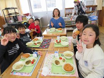 1年間お世話になった給食ボランティアの方に感謝の想いを込めて、給食試食会を行いました。ボランティアの方は、それぞれのお子さんの在籍するクラスで、子供たちと一緒に楽しく会食しました。給食ボランティアの皆様、これからもどうぞよろしくお願いします。給食は、【いちごランチ】ハンバーグニラソースかけ、ハトムギ雑炊、さつきのまいの米粉パン、イチゴ、牛乳でした。