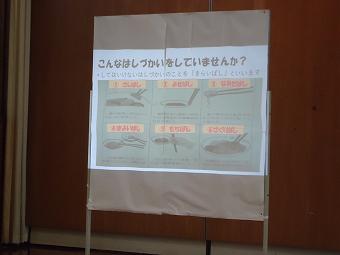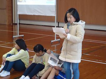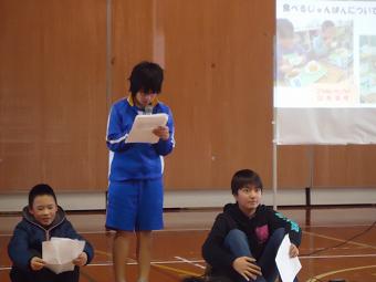 健康委員会が業間の時間に発表しました。テーマは「健康と食育」です。食事のマナーや、手洗いの仕方、食べる順番、姿勢、箸の使い方など、健康委員が自主的に調べたことを、しっかりと発表しました。発表会後は、みんなで「つばさをください」を歌いました。