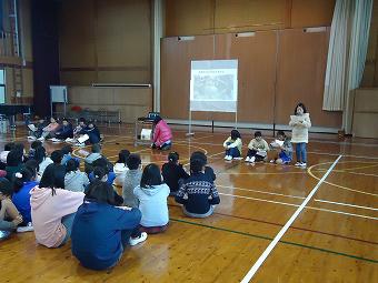 KLVの方が低学年に、長野地方に伝わる「あずきまんま」というお話を語ってくださいました。どの子も、目を輝かせて、お話の世界に入り込んでいました。KLVの方、大変ありがとうございました。