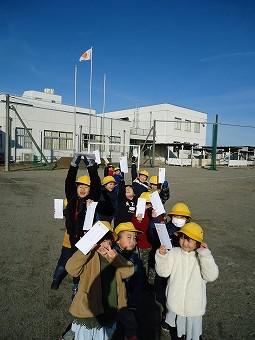 下校時、児童と職員で通学路を点検しました。危険箇所や子供110番の家などを確認したり、正しい登下校の仕方を学んだりしました。これからも交通事故ゼロを目指します。