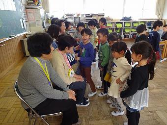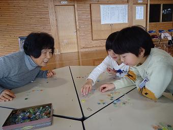 1年生が生活科で昔の遊び体験を行いました。自分のおじいさん、おばあさん、地域の方にボランティアティーチャーとなっていただき、昔の遊びを教えていただきました。コマ回し、羽根つき、お手玉、あやとり、おはじき。今はもうなかなか遊ぶことのない昔の遊びの方法を教えていただきました。子供たちは、いつの時代も遊びが大好き。おじいさん、おばあさんと楽しく夢中になって遊んでいました。授業後は一緒に給食を食べるなど、世代を超えて楽しいひとときを過ごしました。ボランティアティーチャーになっていただいた方々、大変お世話になりました。