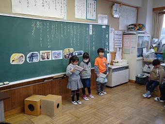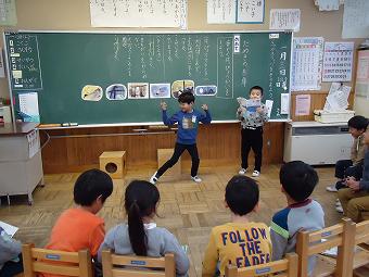 1年生が国語で「たぬきの糸車」の音読発表会を行いました。どのグループも、登場人物になりきって、動作を交えて、楽しく、一生懸命、音読していました。