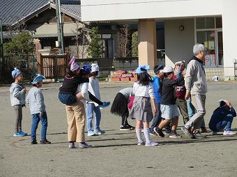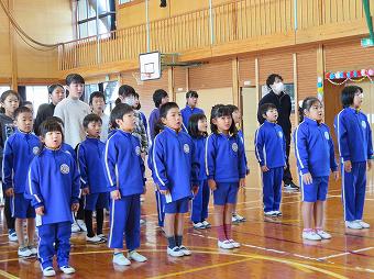 4年生と6年生が合同体育を行いました。一緒に体育を行うことで、体力の向上を図るとともに、4年生は畏敬の念を、6年生は思いやりの心を養います。前半は手つなぎ鬼で、思い切り走り回り、後半は、ドッジボール大会に向けての練習を行いました。