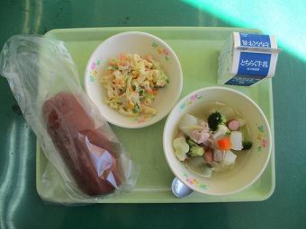 給食は、ココア揚げパン、ポトフ、マカロニサラダ、牛乳でした。