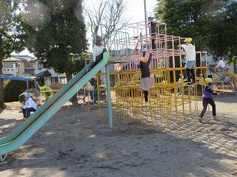 昼休みの風景です。先生も子供たちも、それぞれの場所で、思い思いに楽しく遊んでいます。