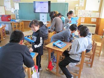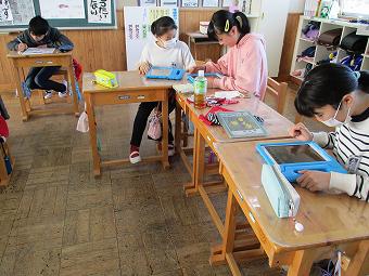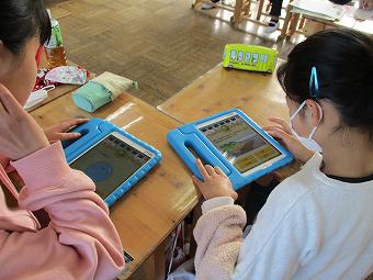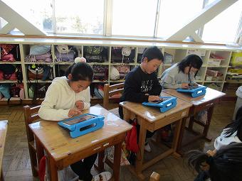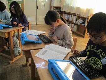 5年生がタブレットを使って学習をしました。タイピングの練習をしたり、ドリル型ソフトで、それぞれもう一度復習したい分野を復習したりしました。どの子も意欲的にタブレットを操作して、学習をしていました。