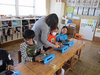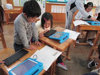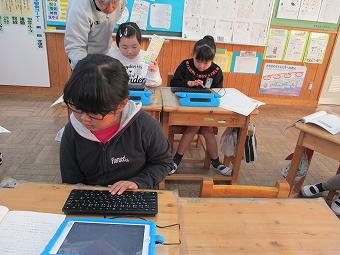 3年生が国語でローマ字の学習を行いました。今回は、鹿沼市内すべての小学校に導入されたタブレットとキーボードを使っての学習です。はじめてのタブレットでしたが、どの子も、ルールをきちんと守りながら、すぐに慣れて、意欲的に操作しながら、ローマ字を覚えていました。これからどの学年も、さまざまな学習で、タブレットを効果的に学習に役立てていきます。