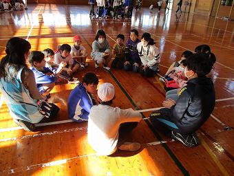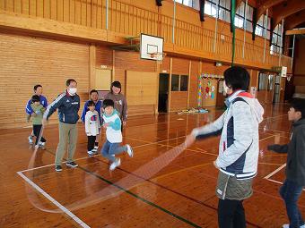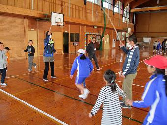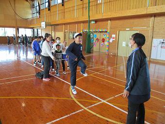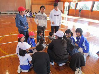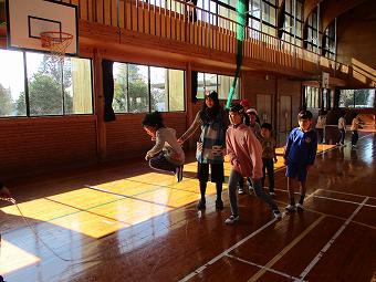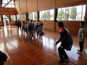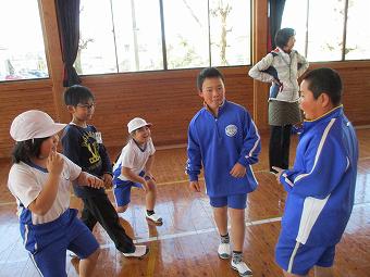 1年生と6年生が合同体育を行いました。卒業を間近に控えた6年生の願いで、各学年と6年生との体育を随時行っています。1年生とは、一緒に踊ったり、小グループで簡単なゲームをしたりと、笑顔溢れる楽しい交流を行いました。